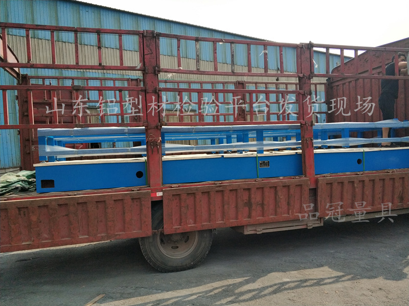 山東鋁型材檢驗(yàn)平臺(tái)規(guī)格6000*600*350mm,數(shù)量3臺(tái),已于2019.06.04日裝車發(fā)貨,預(yù)計(jì)明日上午到達(dá),請采購科王經(jīng)理注意接貨,貨物單件重量2.5噸,總重量7.5噸。
